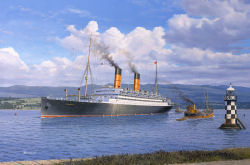 SS Carmania off Port Glasgow, 1924. Oil on board, 36 x 24 ins / 915 x 610 mm. Commissioned by Cunard Line for cruise liner, MV Queen Victoria, 2007. |